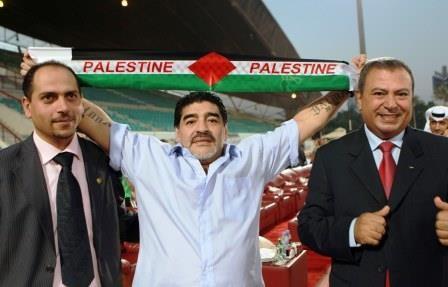 وتجاوب مارادونا كثيرا مع جميع المشاركين في التصفيات، خاصة بعثة منتخب فلسطين، وحرص على رفع كوفية فلسطين عاليا، والتي أهادها له قاسم رضوان قنصل فلسطين في دبي، كما لبى طلبات البعثة بالتصوير مع لاعبيها.