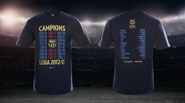 أعلن نادي برشلونة الإسباني أنه جهز قميصا للاحتفال بلقب الدوري الإسباني لعام 2012-2013 بعد سقوط غريمه التقليدي ريال مدريد في فخ التعادل البارحة أمام فريق إسبانيول في إطار الجولة قبل الأخيرة من منافسات الدوري الإسباني، حيث يحتل برشلونة المركز الاول بـ "88" نقطة، بفارق "7" نقاط عن أبرز ملاحقيه ريال مدريد.