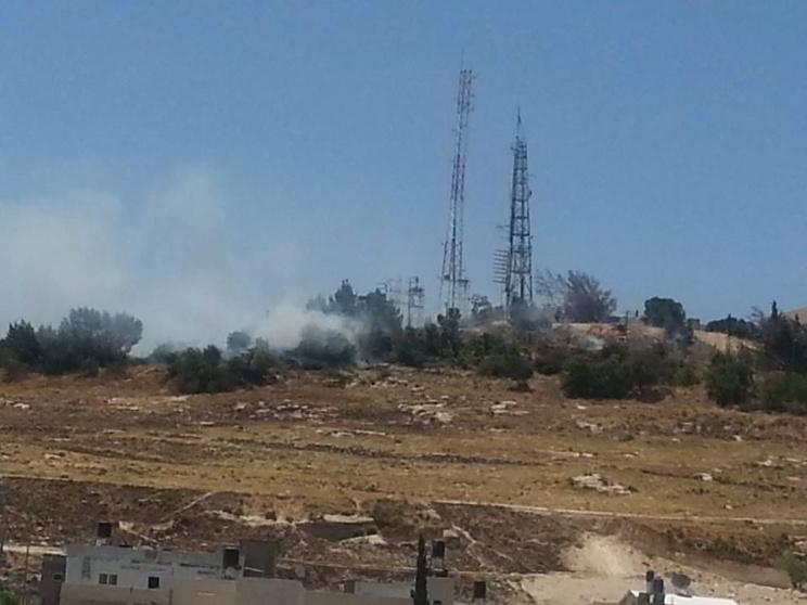 حريق قريب من معسكر لجنود الاحتلال شمال القدس بالقرب من قرية العيساوية