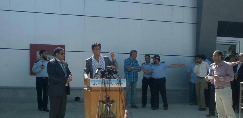 عساف الذي توشح بالكوفية وسط لجنة الاستقبال من الحكومة المقالة قال أن هدف شعبنا هو الحرية وأنه يتمنى توحيد شقي الوطن من خلال مشاركته الفنية التي أفضت الى فوزه بلقب محبوب العرب .