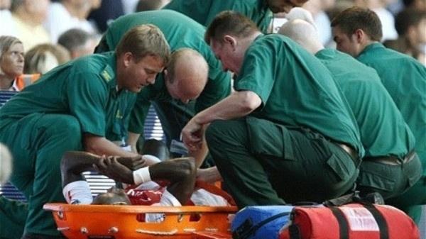 شهدت مباراة أرسنال وأستون فيلا في افتتاح الدوري الإنجليزي سقوطاً مروعاً للظهير الأيمن الفرنسي بكاري سانيا لاعب نادي أرسنال الإنجليزي إثر كرة هوائية مشتركة مع مهاجم استون فيلا كريسيتان بينيتيك.