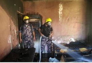 الامر الذي ادى الى سقوطها واحتراق الغرفة بالكامل اضافة الى السناج الي انتشر في كافة ارجاء المكان، وعمل الطاقم على عزل وتبريد مكان الحريق ومنعه من الامتداد الى باقي اروقة المنزل.