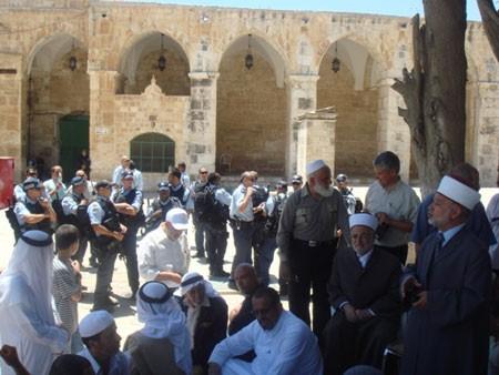 يرابط في هذه الأثناء المئات من أهالي القدس والداخل الفلسطيني وطلاب مصاطب العلم في المسجد الاقصى منذ ساعات الصباح الباكر وذلك بعد خروج دعوات من جماعات الهيكل والمستوطنين باقتحام ضخم لباحات المسجد اليوم عشية عيد العرش .