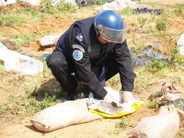 شرطة هندسة المتفجرات تتعامل مع قذيفة مدفعية في سلفيت