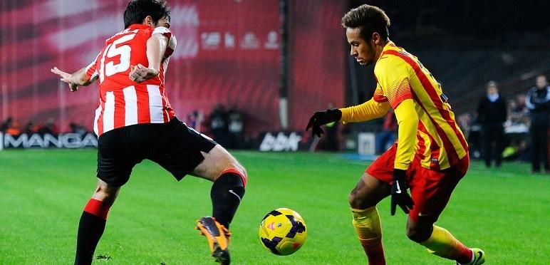 وكان الشوط الأول متكافئاً للغاية، فرغم أن دقائقه الأولى شهدت حماساً من أصحاب الأرض لكن برشلونة استعاد توازنه واستوعب ملعب الخصم الصعب، ثم هدد المرمى في أكثر من مناسبة كانت أخطرها تسديدة نيمار التي أبعدها حارس بلباو ايرازيوس بصعوبة بالغة.