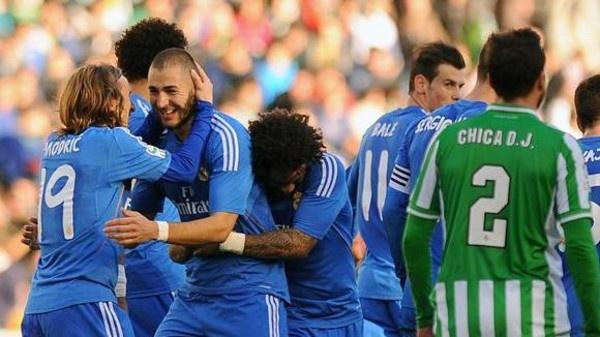 أصبح ريال مدريد شريكا في الصدارة لبرشلونة وأتلتيكو مدريد لمدة 24 ساعة، بعد فوزه على مضيفه ريال بيتيس صاحب المركز الأخير 5-صفر، اليوم السبت، في المرحلة 20 من الدوري الاسباني لكرة القدم.