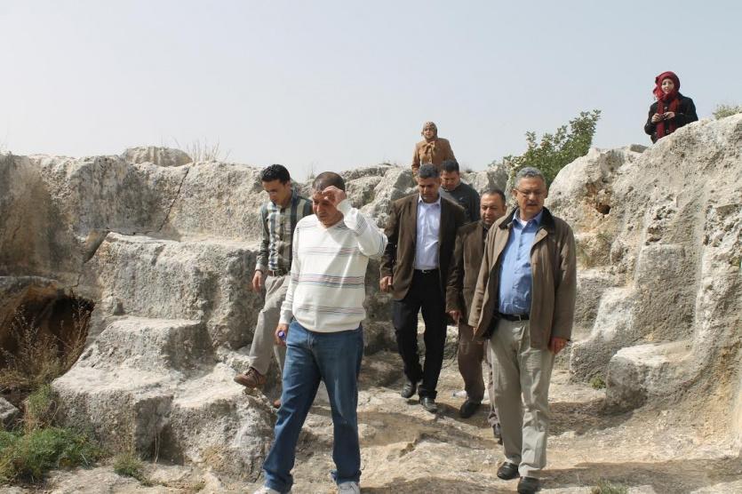 واستمع من مدير السياحة والآثار عن تاريخ المنطقة الاثرية وعن التعديات التي تتعرض لها من حفريات وتغيير لمعالم المنطقة والتي اشار الى انه رغم صعوبة متابعة غالبية التعديات نتيجة طبيعة المنطقة ووقوعها في المنطقة النصنفة اسرائيليا " c " ، وأضاف قائلاً " ان الاحتلال يحاول بكافة الوسائل خلق واقع جديد على الارض من خلال تكثيف الاستيطان وقضم الأراضي، والتضييق على المواطنين .