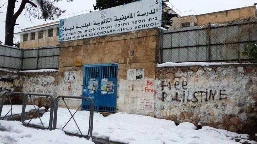 مدرسة المأمونية تغلق ابوابها احتجاجا على زيارة رئيس بلدية الاحتلال لها