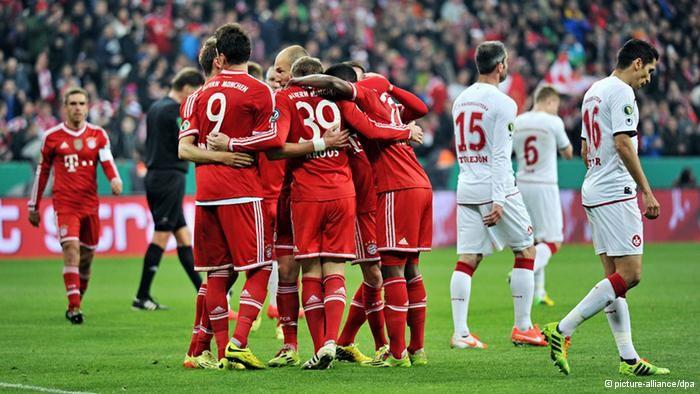 قطع فريق بايرن ميونيخ خطوة جديدة في طريق الحفاظ على ثلاثية الموسم الماضي، إذ تأهل لملاقاة بوروسيا دورتموند في نهائي كأس ألمانيا لكرة القدم عبر الفوز على ضيفه كايزرسلاوترن المنافس بدوري الدرجة الثانية بخمسة أهداف مقابل هدف في المباراة الثانية في دور نصف نهائي البطولة (الأربعاء 16 أبريل/ نيسان 2014).