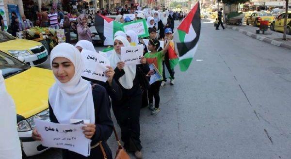 سلسلة بشرية من الأطفال دعما للأسرى في طولكرم