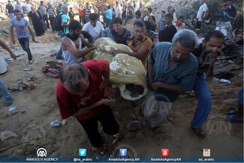 أما في بلدة خزاعة شرق خانيونس جنوب القطاع فقد انتشلت الطواقم الطبية 15شهداء.