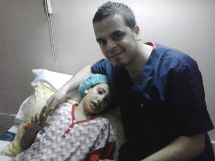 وصلت صفحة رايــة اف ام رسالة على فيس بوك من طبيب فلسطيني يعمل " جراحة وجه وفكين وجمجمه" في مستشفى ناصر بالقاهر يدعى حمزة الخراز وقد التقط صورة مع طفلة وهي ناجية وحيدة من بين افراد عائلتها نتيجة قصف الاحتلال منزلهم في حي الشجاعية .