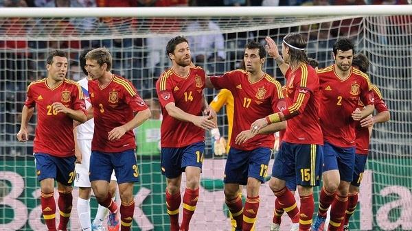وللوسط : كوكي وراؤول جارسيا (أتلتيكو مدريد) وأندير إيتوراسبي (أتلتيك بلباو) وسيرخيو بوسكيتس وأندريس إنييستا (برشلونة) وديفيد سيلفا (مانشستر سيتي الإنجليزي) وسانتياغو كازورلا (أرسنال الإنجليزي) وسيسك فابريغاس (تشيلسي الإنجليزي) وإيسكو (ريال مدريد) .