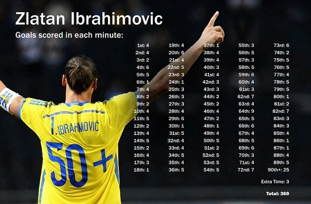وسجل إبراهيموفيتش طوال مسيرته الكروية على مدى 15 عاماً 369 هدفاً، لكنه لم يكن قد سجل في الدقيقة 24 من قبل، وهو ما استطاع القيام به في مباراة إستونيا، بحسب صحيفة "ديلي ميل" البريطانية.