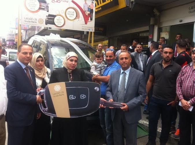 تسليم الجائزة الكبرى لرابح سيارة الجيب من بنك القدس في جنين