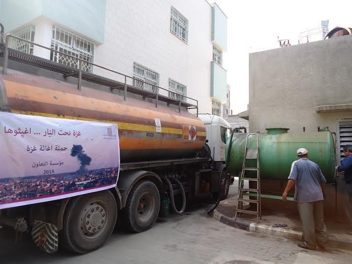 استجابة لنداء الاستغاثة من قبل وزارة الصحة الفلسطينية، جراء نقص الوقود في مستشفيات قطاع غزة، وبما يهدد حياة المئات من المرضى، سارعت مؤسسة التعاون إلى تزويد المستشفيات الرئيسية في القطاع بـ 50 ألف لتر من السولار بقيمة 90 ألف دولار، وذلك لمجمع الشفاء الطبي في مدينة غزة، ومجمع ناصر الطبي في مدينة خان يونس، ومستشفى النصر للأطفال، ومستشفى الرنتسي التخصصي، ومستشفى بيت حانون شمال القطاع، حيث ستساهم هذه المنحة في تخفيف الأزمة الحالية، وتوفير الوقود اللازم لتشغيل أقسام الاستقبال، والجراحة، وغرف العمليات، والأقسام الأخرى.