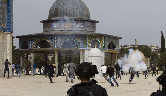 وأضاف البيان: 'يقوم هذا العدو المتغطرس بإغلاق أقدس المقدسات في وجه المصلين، هو في نفس الوقت يطلق العنان لقطعان المستوطنين لاستباحة ساحات هذه المقدسات في خطوة بات الجميع يعلم أنها تهدف لمحاولات تقسيم المسجد الأقصى بين المسلمين واليهود زمانيا ومكانيا تماما كما حصل سابقا في الحرم الإبراهيمي في مدينة الخليل في خطوة أولى تمهيدا لوضع اليد بالكامل على المسجد الأقصى وتدميره'.