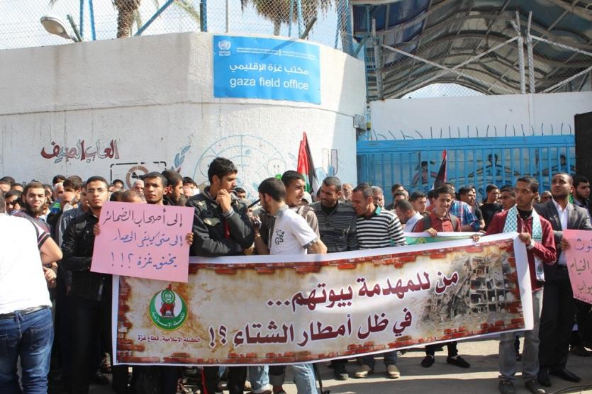 نظمت حركة حماس وقفة احتجاجية أمام مقر الأونروا بمدينة غزةـ ظهر الأربعاء، للمطالبة بسرعة إعادة الاعمار، ورفضا لخطة مبعوث الأمم المتحدة لعملية السلام روبرت سيري.