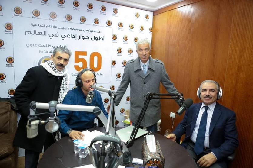 وأضاف اشتيه خلال حضوره على طاولة الزميل طلعت علي الذي يدير أطول برنامج اذاعي لدخول موسوعة "غينتس" أن القيادة الفلسطينية تسعى