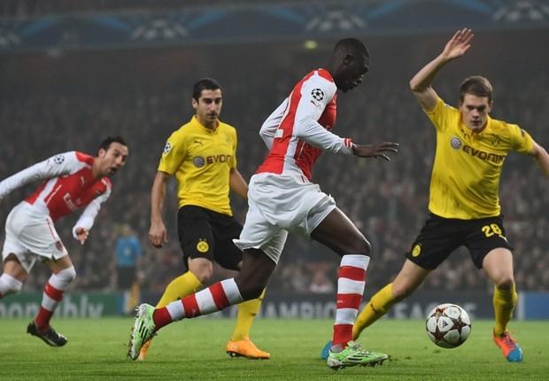 آرسنال ومع الهجمة الأولى اخترق عمق دفاع دورتموند بتمريرة من كاثورلا للمهاجم العائد "يايا سانوجو" الذي انفرد بمرمى الحارس "فايندينفيلر" وباغته بهدف التقدم لفريقه وسط فرحة عارمة في ملعب الإمارات.