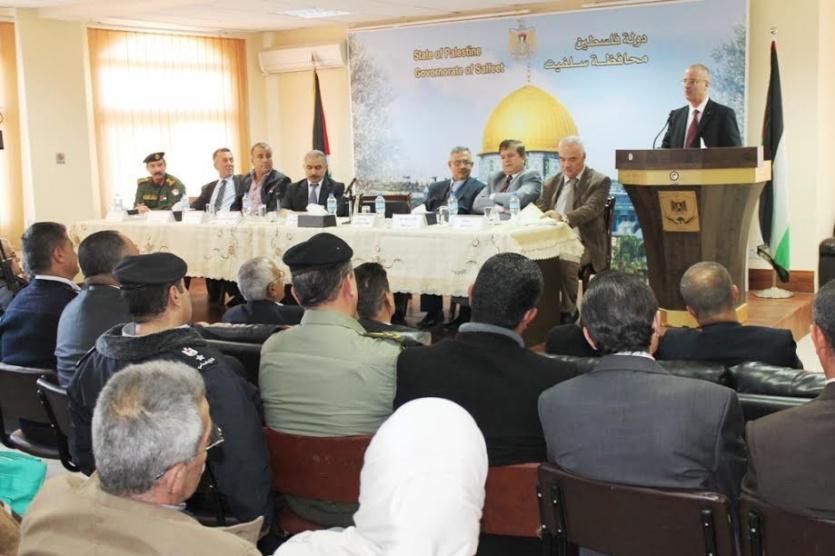 وقبل بدء فعاليات الاحتفال اجتمع رئيس الوزراء د. رامي الحمدالله بمحافظ سلفيت عصام ابو بكر، بحضور قائد المنطقة العقيد ركن رياض الطرشة وامين سر اقليم سلفيت عبد الستار عواد، ومدراء الاجهزة الامنية وطاقم المحافظة، حيث تم اطلاعه على مجمل الاوضاع الامنية التي تعيشها المحافظة في ظل الاستهداف الاسرائيلي وتصاعد وتيرة الاستيطان والانتهاكات الاسرائيلية. وتم مناقشة اهم المشاريع والاحتياجات في المحافظة .