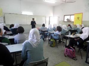 نظمت الشرطة اليوم الأحد محاضرة توعوية وتدريب ميداني لفرق السلامة المرورية والحد من ظاهرة حوادث السير وكيفية عبور الطريق بشكل امن لطالبات مدرسة عادل زعيتر الاسياسية للبنات بنابلس.