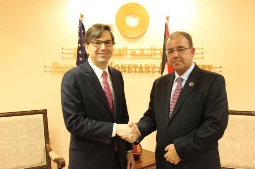 التقى الدكتور جهاد الوزير، محافظ سلطة النقد الفلسطينية في مكتبه برام الله صباح اليوم الدكتور جايسون فيرمان رئيس مجلس المستشارين الاقتصاديين للرئيس الامريكي باراك اوباما.