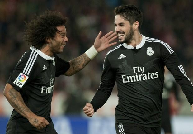 استمر الوضع كما عليه، ولولا رعونة بنزيمة وبيل في الفرص السهلة التي أتيحت لهما، لتقدم الميرنجي بهدفين بعد مرور نصف ساعة من زمن الشوط الأول، لكن الانفراجة أتت من الشاب "إيسكو" الذي تسلم الكرة "بالصدر" داخل منطقة الجزاء، ومن ثم هيأها لنفسه وعبث بالمدافع روخا، وفي الأخير أطلق تصويبة مقوسة في أقصى الزاوية اليمنى للحارس الذي حاول التصدي للكرة، لكن دون جدوى، لتعلن الدقيقة 34 عن تقدم رجال أنشيلوتي.