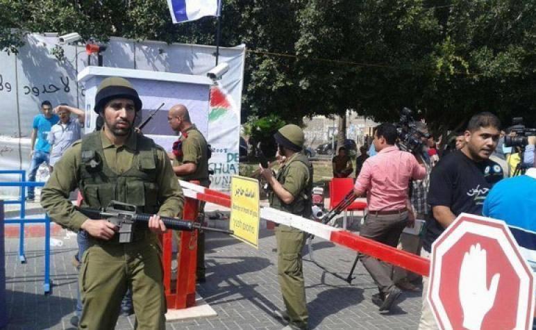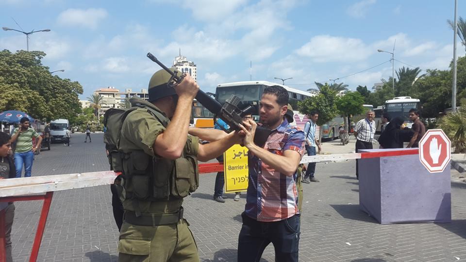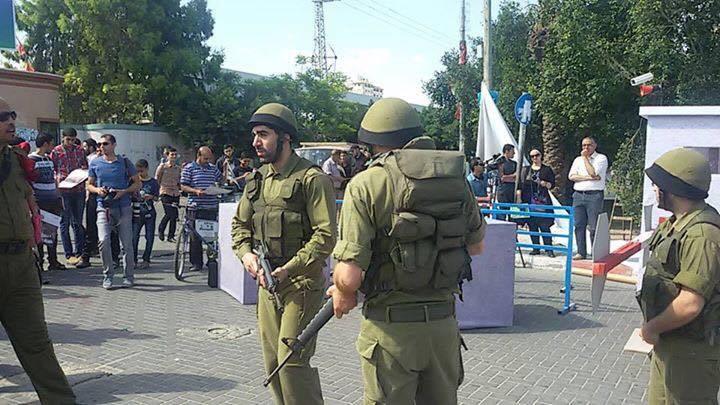 وتنكر بعض النشطاء بملابس عسكرية وأسلحة تحاكي جيش الاحتلال الاسرائيلي.