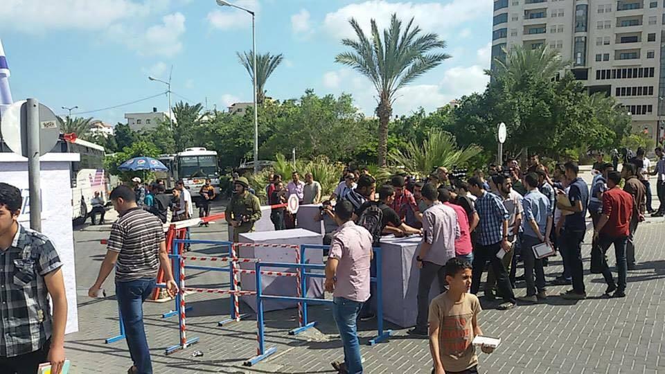 اقامت مجموعة شبابية في قطاع غزة حملة "متحركين لأجل فلسطين" مجسمات لحواجز عسكرية إسرائيلية في ساحة حديقة جامعة الأزهر وسط مدينة غزة.