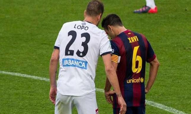 كان لوبو قال إن القطة التي ظهر فيها وهو يتحدث مع تشافي في المباراة، طلب منه أن تخفيف الضغط وعدم اللعب بكامل قواهم، لأن ديبورتيفو في حاجة لنقطة للبقاء.