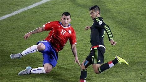 وباغت المنتخب المكسيكي أصحاب الأرض بتقدمه مرتين عبر هدفين سجلهما ماتياس فيوسو وراؤول خيمينيز في الدقيقتين 21 و29 وتعادل منتخب تشيلي في المرتين بهدفين أحرزهما فيدال وإدواردو فارجاس في الدقيقتين 22 و42 لينتهي الشوط الأول بالتعادل 2 / 2 .