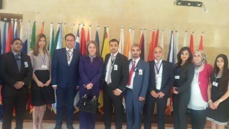 وضم وفد الخارجية كل علاء زعول وسعاد صبح وعضو اللجنة الاعلامية للمؤتمر ايهاب عمر، ورزان لفتاوي ويزن قنداح، واحلام طه ودرار حسن وسماح الخليلي ومحمود الشيخ ورامي عريقات وايمن نمر ، ودينا الهماش.