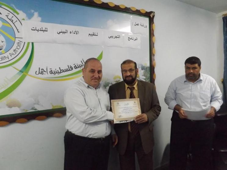 قامت سلطة البيئة متمثلة بالإدارة العامة لحماية البيئة بتكريم البلديات الخمس المشاركة في البرنامج التجريبي لتقييم أداء البلديات البيئي في فلسطين، جاء ذلك على هامش ورشة عمل عقدتها البيئة في مقرها في مدينة غزة بحضور م.كنعان عبيد رئيس سلطة جودة البيئة و المهندس بهاء الدين الأغا مدير عام حماية البيئة بالإضافة لممثلي البلديات الخمس المصنفة " كبرى" في قطاع غزة.