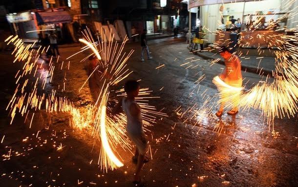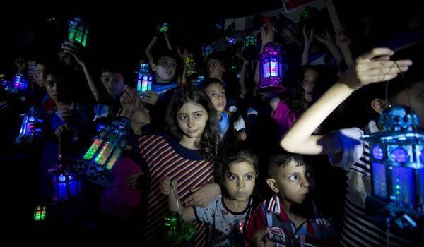 في غزة يخرج الأطفال بالعشرات كعادتهم في كل عام للاحتفال بطريقتهم البريئة بقدوم شهر الخير، فما أن يحل الزائر الكريم حتى تكتسي شوارع غزة بثياب الفرح التي يزينها الأطفال بألعابهم النارية البسيطة التي يطلقونها "كالسلكة المعدنية التي يٌشعلونها، والمفرقعات"، والملفت أن هؤلاء الاطفال يصنعون بأيديهم فوانيس رمضان بعلب حديدية فارغة ويشتهرون بها.