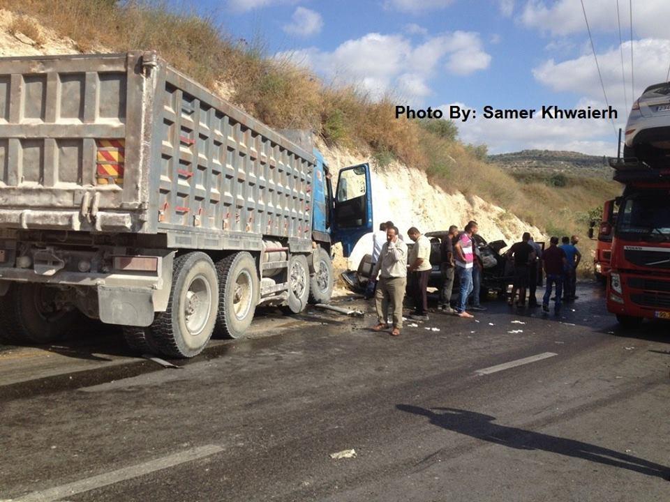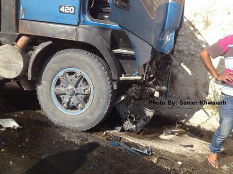 أصيب مواطنان في حادث سير تصادم بين مركبة شحن ومركبة صغيرة مساء اليوم أثناء سيرها على طريق برقة بزاريا جنوب محافظة جنين.