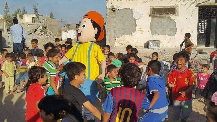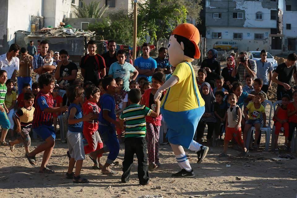 وانطلقت مراسم الفعالية بالرسم علي وجوه الأطفال وعمل تنشيط جماعي ومن ثم الرقص مع الدمي ولعب الالعاب المختلفة وختام الحفل كان مع فقرة المهرجين وتوزيع طعام الافطار علي أصحاب البيوت المدمرة وتناول طعام الافطار مع الاطفال.