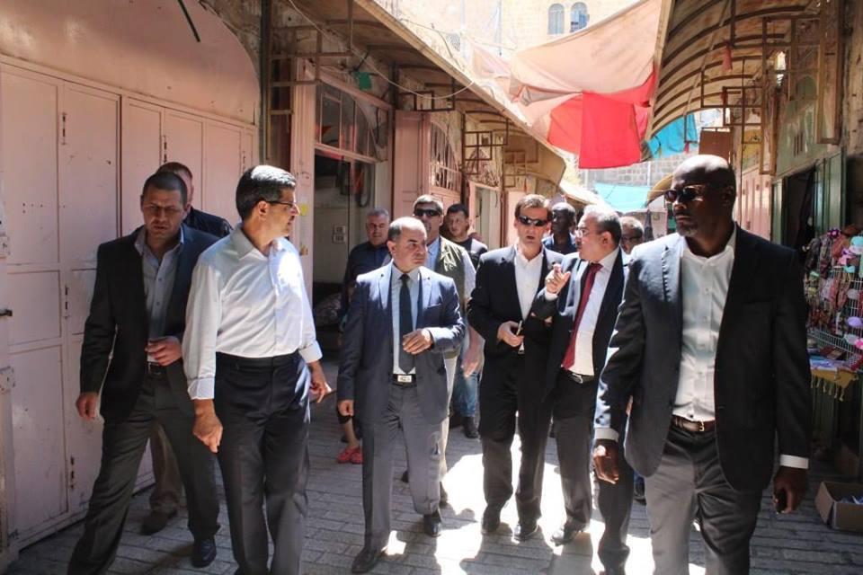 وبهدف إطلاع الوفد على الواقع الذي تعيشه الخليل، اصطحب رئيس الغرفة ومديرها العام أعضاء الوفد إلى زيارة للبلدة القديمة، وشارع الشهداء، ومنطقة السهلة للاطلاع على آخر المستجدات في تلك المنطقة، حيث شاهدوا بأنفسهم إغلاق إسرائيل لمئات المحلات التجارية بأوامر عسكرية، وعدم السماح للمواطنين الفلسطينيين بالدخول إلى شارع الشهداء -والذي تم ترميمه بتمويل أمريكي- باعتباره منطقة عسكرية مغلقة، والممارسات الإسرائيلية بحق السكان الفلسطينيين، في مقابل إعطاء المستوطنين الحرية التامة في الحركة والتنقل في تلك المنطقة.