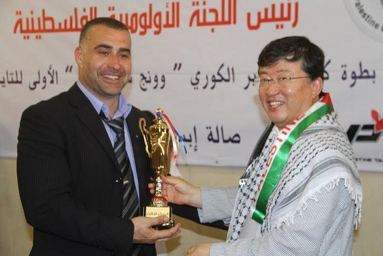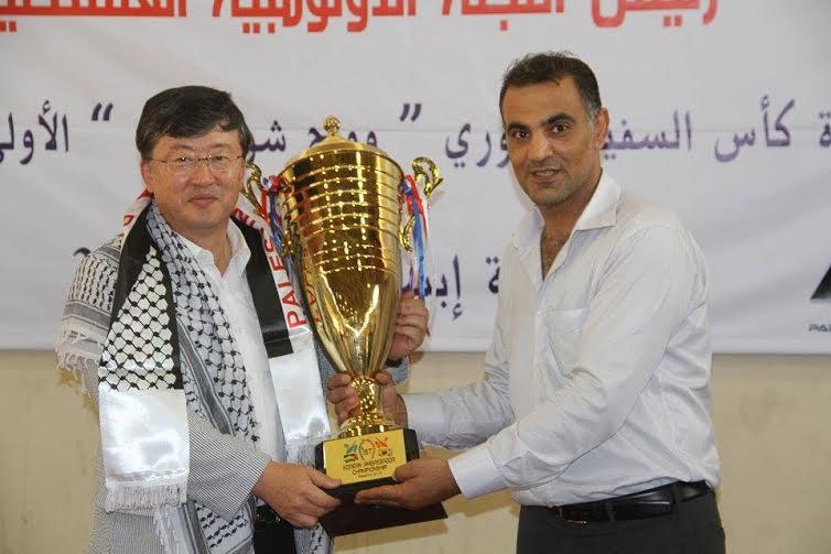 وفي ختام البطوله قدم رئيس الاتحاد المهندس عمر كبها دروعا تقديرية للواء جبريل الرجوب ، وللسفير الكوري وونج شول باك.