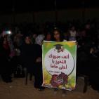 قائلةً خلال كلمتها " نحن نجاهد في معركة العلم حاملين الأقلام أسلحة ومتخذين من الكتب دروعاً نذود فيه عن وطننا ليعلو بنا ونعلو به، معاهدين الله أن نبقى الأوفياء لدماء شهدائنا ومدافعين عن حقوق وطننا متمسكين بفلسطين الأرض والوطن والشعب ،عاملين على تحريرها من دنس المحتلين والغاصبين والمتآمرين ،مدافعين عن الإنسان، وتحرير كافة أسرانا من سجون الإحتلال، فلكم منا العهد والقسم حتى تحرير الأرض والإنسان".