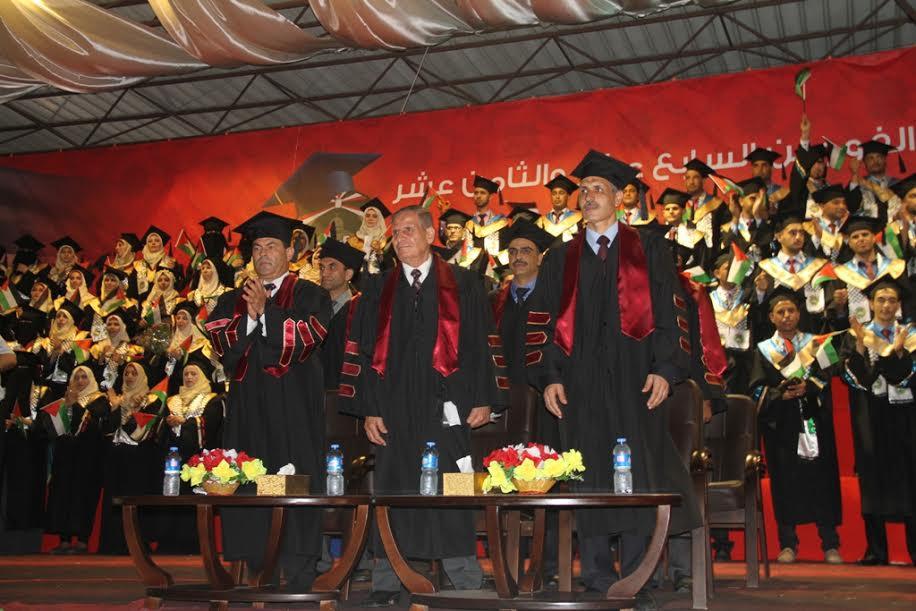 وبدأ الاحتفال بحضور نائب رئيس مجلس أمناء الجامعة ممثل رئيس دولة فلسطين (راعي الحفل) أ.د.رياض الخضري، وأعضاء مجلس أمناء الجامعة بالقطاع، ونائب رئيس الجامعة لشؤون قطاع غزة د.جهاد البطش، وأعضاء مجلس الجامعة، وأعضاء الهيئتين الأكاديمية والإدارية بالجامعة، بالإضافة إلى حشد كبير من ممثلي الهيئات والمؤسسات الوطنية والشخصيات الاعتبارية، والوجهاء، وعائلات الخريجين.