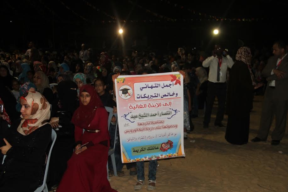 وانتهى الحفل بتكريم بعض المؤسسات الداعمة للجامعة وتوزيع الشهادات على الخريجين وسط أجواء احتفالية رائعة، تخللها بعض الفقرات الفنية "لفرقة الدبكة من طلبة الجامعة بفرع شمال غزة"، وإطلاق ألعاب نارية وتصفيق وهتافات الحضور تعبيراً عن فرحتهم وبهجتهم بهذا اليوم.