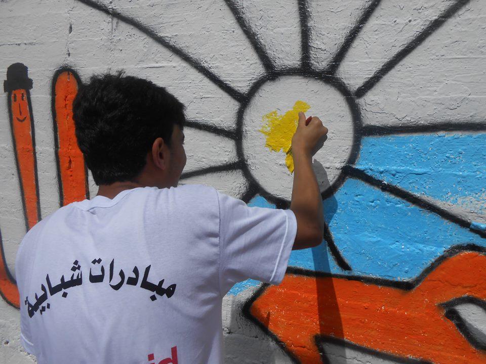 بالصور: المبادرات الشبابية ترسم جدارية "حريتي كرامتي" في الخليل