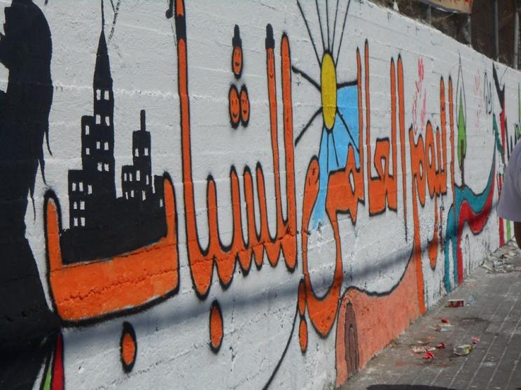 وثمن الفنان التشكيلي سميح أبو زاكية دور الشباب في المشاركة برسم وتلوين الجدارية، مبينا لـ"رايــة" :" هذه الجدارية بمثابة احتفال باليوم العالمي للشباب، فالشباب الفلسطيني وضع شعار حريتي كرامتي ضمن العمل الجداري ليؤكد أن الحرية هي هدفه الأول والأخير".