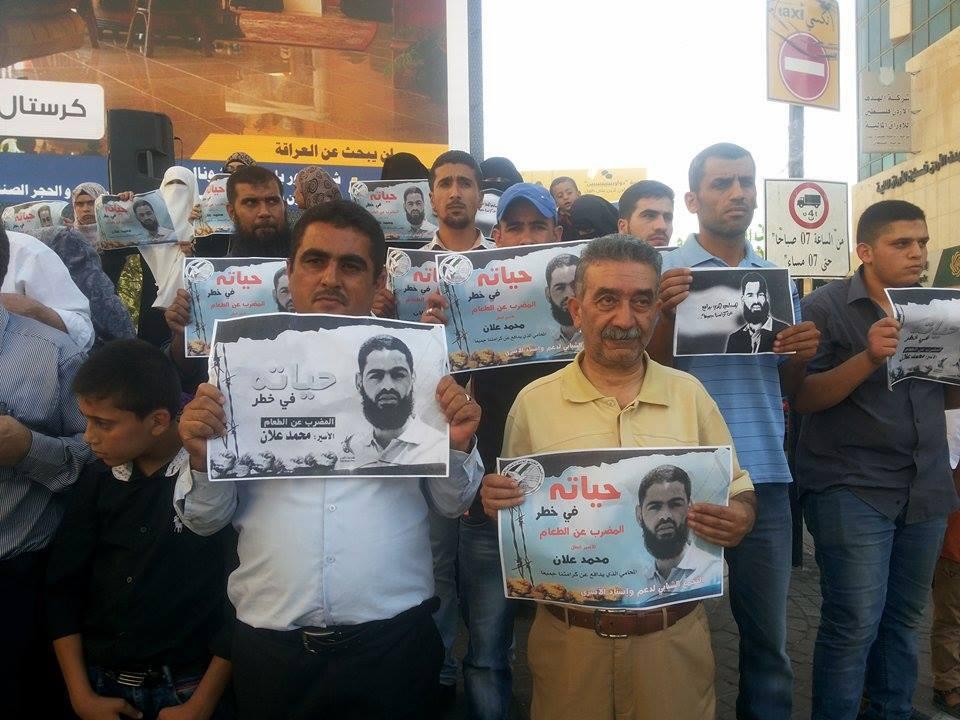 اعتصم عدد من أهالي محافظة الخليل على دوار ابن رشد تضامنا مع الأسير محمد علان المضرب عن الطعام منذ أكثر من شهرين.