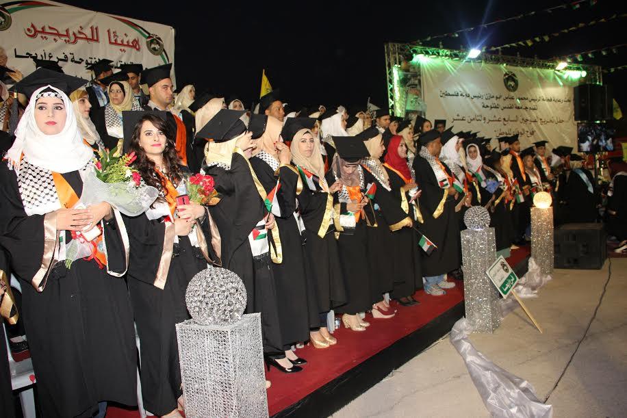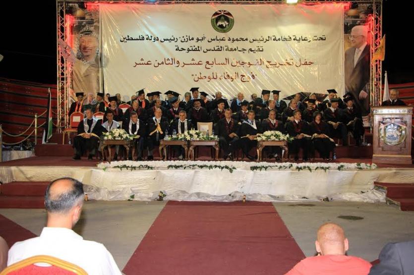تحت رعاية فخامة رئيس دولة فلسطين محمود عباس "أبو مازن"، احتفلت جامعة القدس المفتوحة في فرعي العيزرية وأريحا، يوم الأحد الموافق ‏24‏/08‏/2015م، بتخريج الفوجين السابع عشر والثامن عشر "فوج الوفاء للوطن"، بحضور ممثلي المؤسسات الرسمية والشعبية والسيادية في محافظتي القدس وأريحا، وبحضور محافظ أريحا والأغوار ماجد الفتياني، ومحافظ القدس عدنان الحسيني، ومديري فرعي العيزرية د. إسراء أبو عياش، وأريحا د. راتب أبو رحمة، ومفتي القدس والديار الفلسطينية سماحة الشيخ محمد حسين، والأرشمندريت عطا الله حنا رئيس كنيسة سبسطية للروم الأرثوذوكس، وأميني سر إقليمي حركة فتح في القدس عدنان غيث، وفي أريحا جهاد أبو العسل، وأعضاء الإقليمين، وكان ذلك في مقر محافظة أريحا والأغوار.
