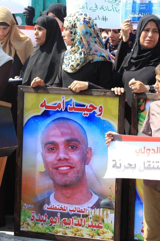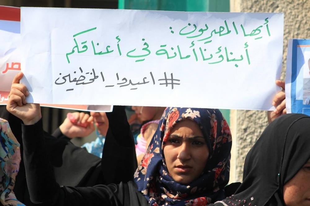 بالصور.. اعتصام لأهالي "المختطفين الأربعة" في مصر أمام سفارتها بغزة