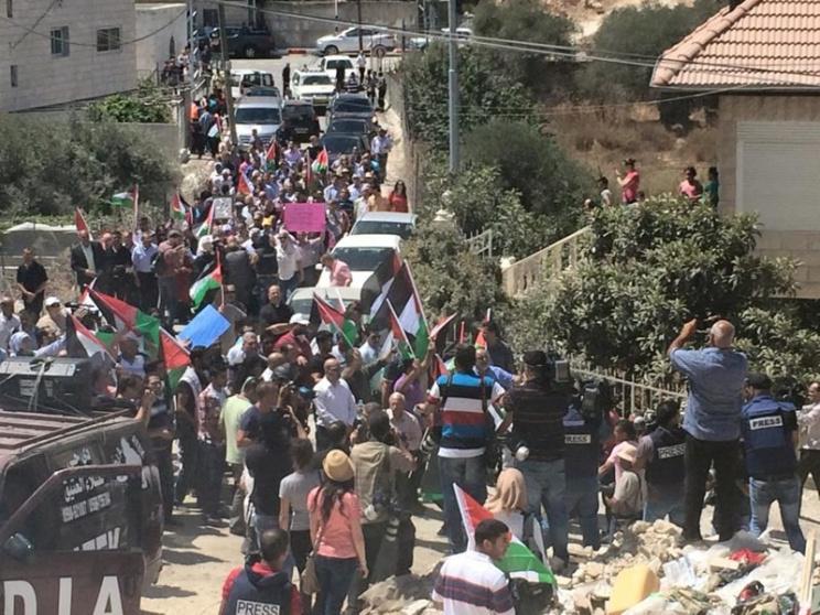ومنعت قوات الاحتلال المسيرة من الوصول إلى المنطقة التي تعمل فيها آليات الاحتلال، وأطلقت عليها وابلاً من قنابل الغاز والصوت، واعتقلت ناشطين بعد التنكيل بهما، وهما توفيق عفانة ويونس عرار.