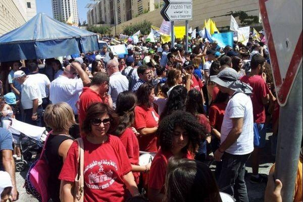 وكانت المظاهرة الحاشدة قد نظمت وسط تواجد عسكري وشرطي معزز أمام مكتب رئيس حكومة الاحتلال غربي القدس المحتلة استمر لساعات لحين انتهاء التظاهرة التي تمخض عنها خلال الكلمات التي ألقيت إعلان إضراب عام في جميع المدارس العربية في الداخل يوم غد 7 أيلول كخطوة إحتجاجية إضافية.