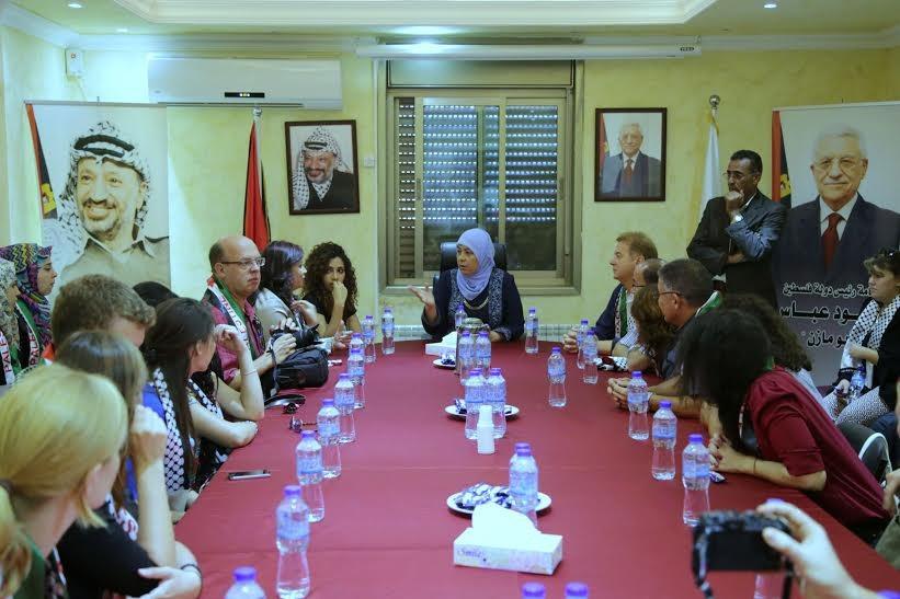 وفي بداية اللقاء رحبت غنام بالوفد وبالزيارة التي تندرج ضمن برنامج التبادل الثقافي الأكاديمي بين الجامعات للتعرف على الجاونب الحياتية في فلسطين الاقتصادية منها والسياسية والاجتماعية مشيرة بأن كافة الوافدين لفلسطين هم سفراء لقضيتها العادلة وشهود على معاناة شعبه.
